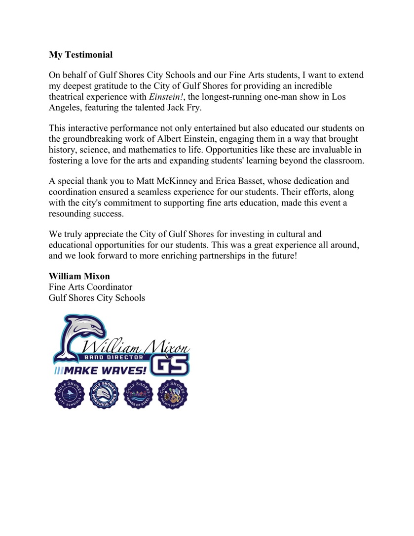 "The Einstein play by Jack Fry was very comical, interactive, and informative!...